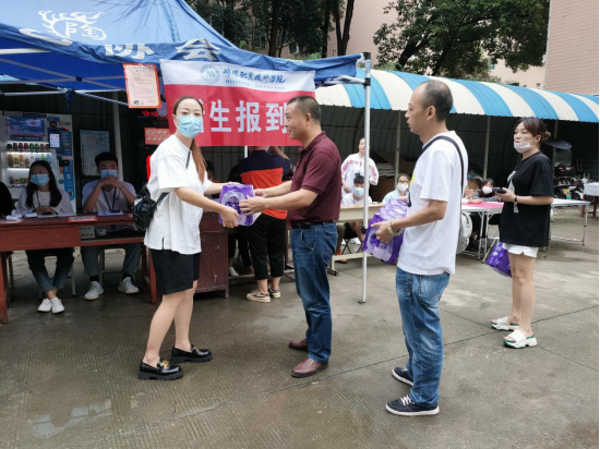 后勤管理处饮食中心为迎新接待点工作人员送上饮用水