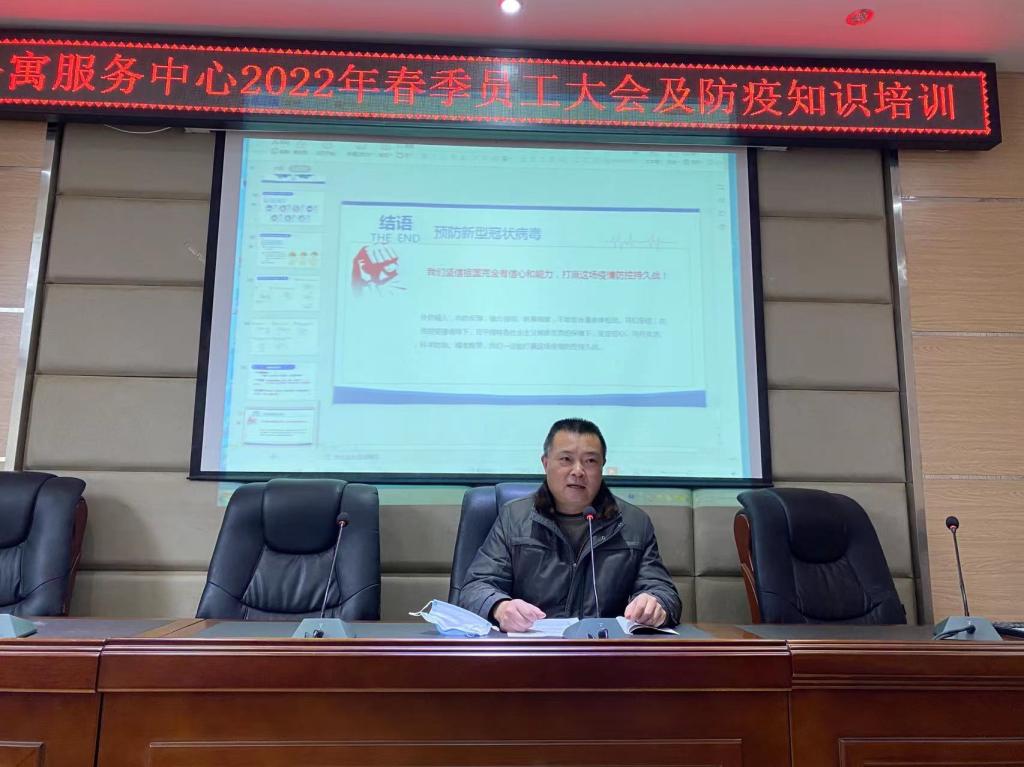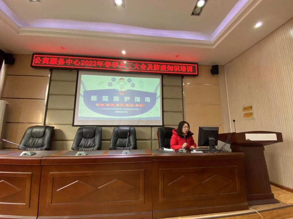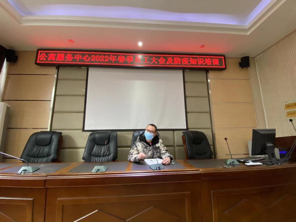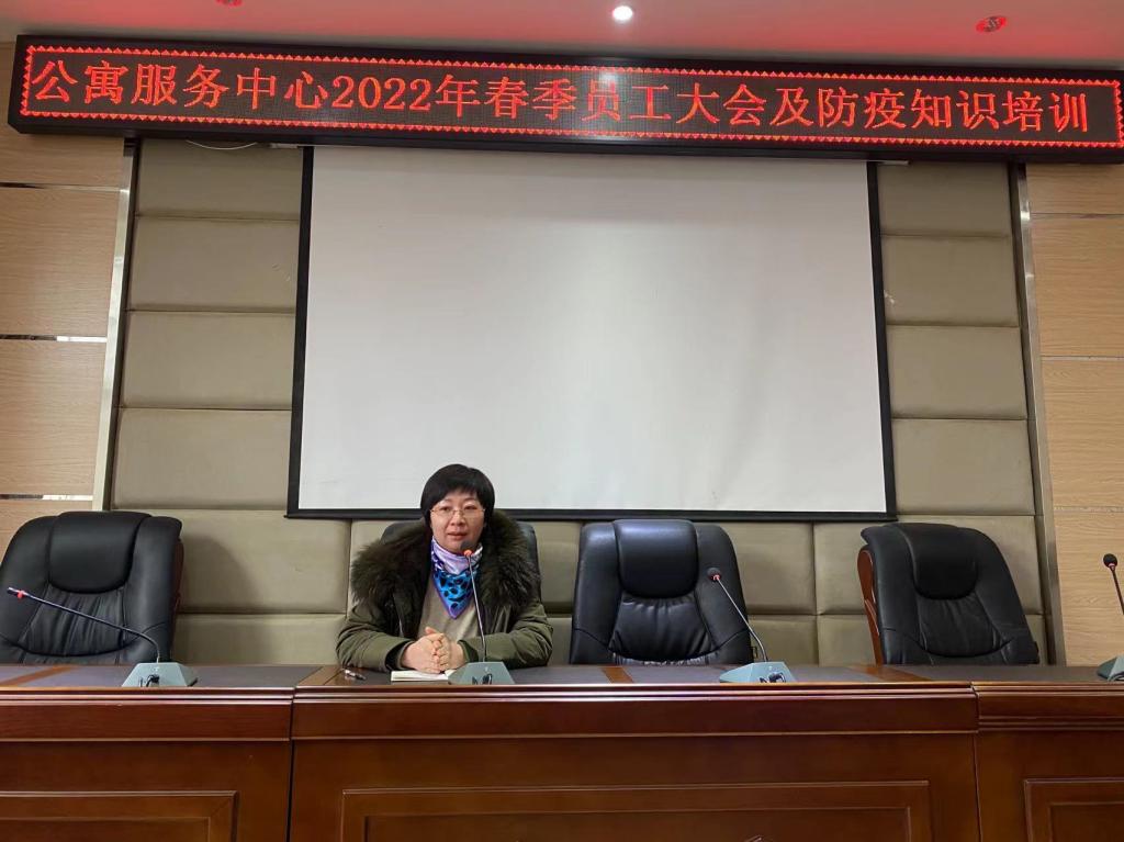 2月20日上午,公寓服务中心在实验楼一楼会议室召开了2022年春季员工大会及防疫知识培训会议。公寓服务中心全体人员参加,后勤管理处副处长林涛参会,会议由中心主任陈虹主持。
