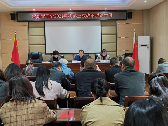 2021年10月20日下午,后勤管理处在实验楼二楼会议室召开了全体教职工2021年秋第三次政治理论学习大会,后勤管理处处长翟向东、副处长郑方、林涛及全体教职工参加了会议,会议由后勤管理处处长翟向东主持。