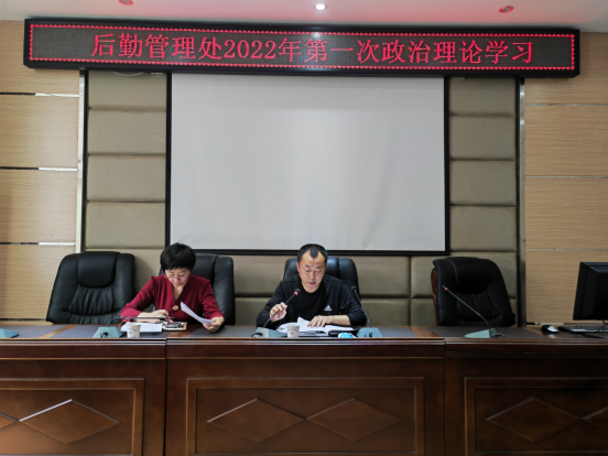 2022年3月18日下午,后勤管理处在实验楼一楼会议室召开了政治理论学习大会,后勤党总支书记、后勤管理处处长翟向东、副处长林涛、副处长舒康及全体职工参加了会议,会议由后勤党总支书记、后勤管理处处长翟向东主持。