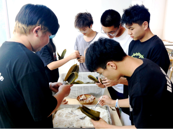 活动中,学校为大家准备好糯米、蜜枣、五花肉、粽叶等包粽子的原材料。同学们在现场互相学习,欢声笑语,其乐融融。经过一个多小时的忙碌,几百余个的粽子堆成了小山,浓浓的粽香飘溢在校园里,带着浓浓的中国文化的气息,浸染着同学们的心灵。随后,还进行了撞蛋、套圈等娱乐游戏。大家跃跃欲试,活动精彩纷呈。